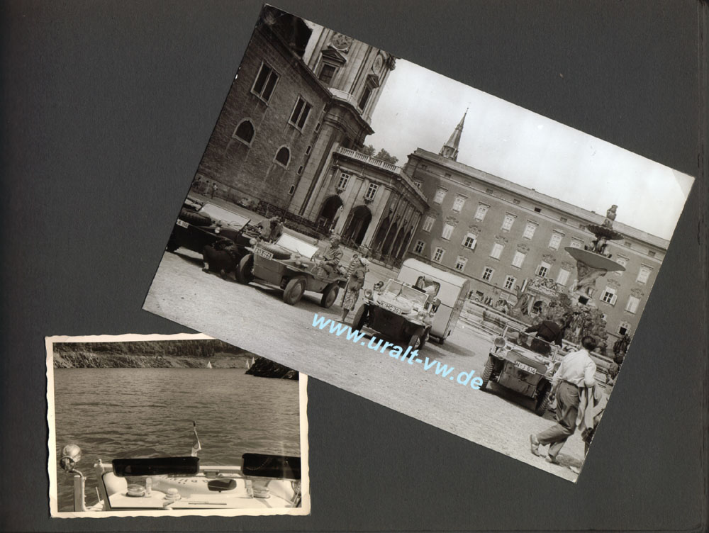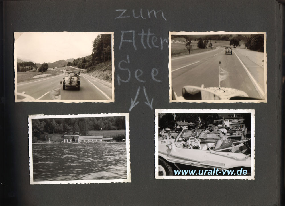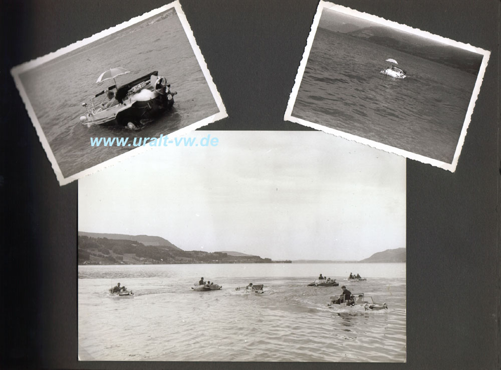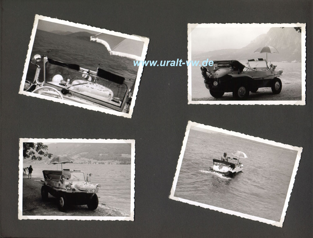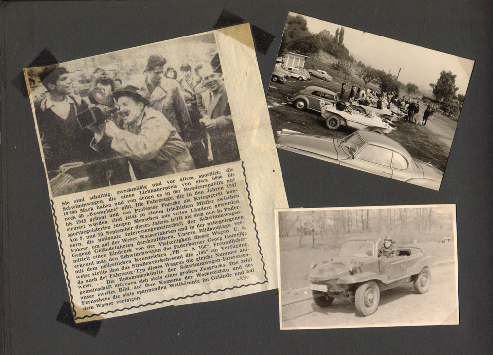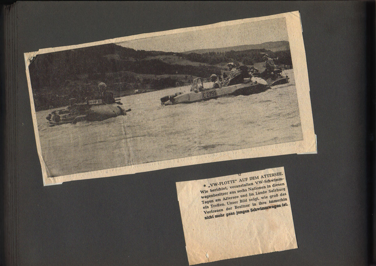 Das Fotoalbum handelt von einem Kölner VW Schwimmwagen namens “Purzel” und dessen Teilnahme am 1. Schwimmwagen-Fahrer-Treffen vom 22.-26. Juli 1960 in Burgau am Attersee (Österreich), sowie am 2. Treffen vom 09.-10. September 1961 in Paderborn. |