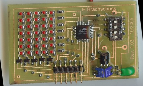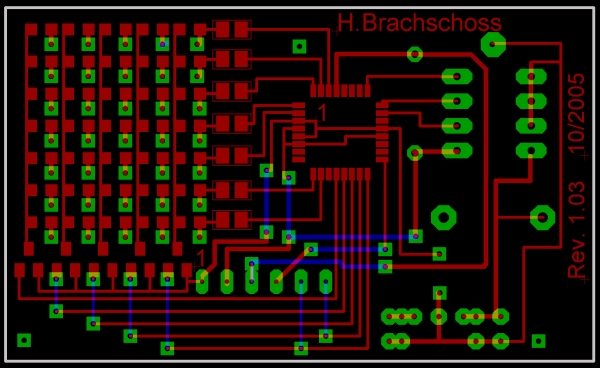 That is the pcb layout of the 5x7 matrix display with a ATMega8L MCU.