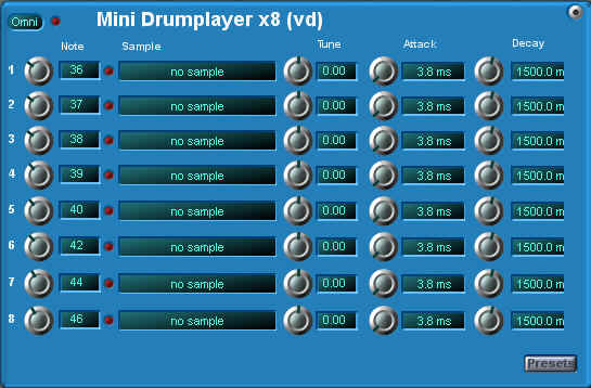 The Minidrumplayer can load up to 8 samples ( WAV or AKAI ),