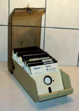 | Diskettenbox für 5 1/4 " Disketten (div. Disketten mit Programmen u. Spielen sind enthalten). Kann auch für CDs benutzt werden. |