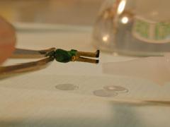 Aus Kunststoff-Klarsichtverpackungen habe ich mit einem normalen Locher kreisrunde Plättchen ausgestanzt, die dann mit einem Tropfen Sekundenkleber rechtwinklig unter die Figuren geklebt werden. ( oft kleben die Figuren bereits auf Kunststoff-Folien - dann werden diese nur passend ausgeschnitten) |