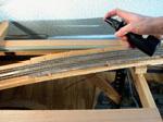 Der Schotter wird zunächst mit einem harten Borstenpinsel und später mit einem feineren Haarpinsel verteilt; schnellere großzügige Bewegungen sind besser als zu zaghafte. |