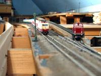 Der Schotter ist gerade verteilt und schon warten die ersten Züge auf eine Probefahrt ……………... |