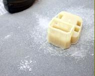 Die Teile der Kaimauer wurden von der Gusshaut getrennt und zur Probe aufgestellt. |