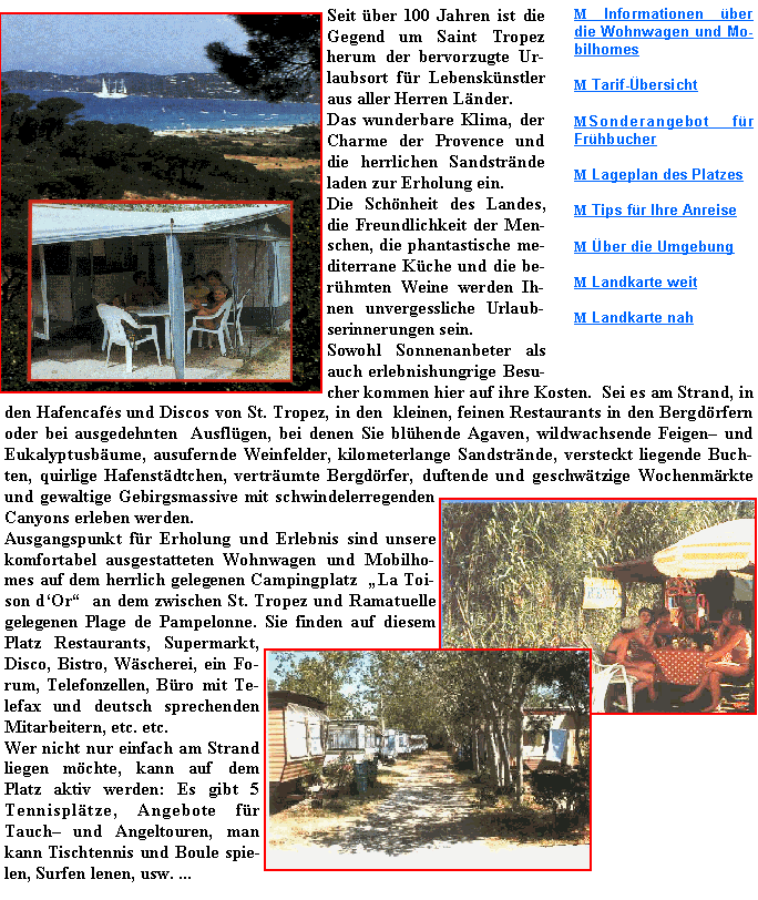 In Frankreich vom 1.3. bis 15.10.: Hendl, Camping La Toison d'Or, Plage de Pampelonne, F-83350 Ramatuelle - St. Tropez Telefon von Deutschland aus: 00 33 4 94 79 83 22, Telefax 00 33 4 94 79 85 63 Telefon von Frankreich aus: 04 94 79 83 22 e-mail: heinz@hendl-online.de