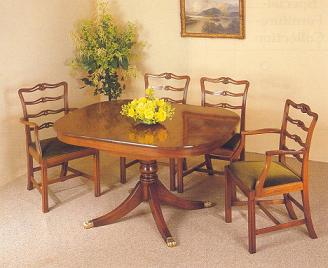 Dieser Eßtisch ist lieferbar ganz aus massivem Mahagoni oder die Tischplatte entweder mit ausgesuchtemMahagoni- oder Eibefunier.