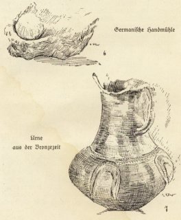 In der Steinzeit saßen in Pommern Indogermanen, die zum Teil nach Süden abwanderten. Von Norden her über die Ostsee kommt germanischer Nachschub und besetzt zunächst Rügen und Vorpommern. Diese Germanen rücken immer weiter nach Osten vor und haben am Ende der Bronzezeit die Weichsel überschritten. Die Bestandteile der Bronze, Kupfer und Zinn, kommt aus Spanien, den Ostalpen, Ungarn und den Britischen Inseln zu uns. Der Handel zu Wasser und zu Lande nimmt einen gewaltigen Aufschwung. Durch Kaufleute und Erzgießer werden Geräte, Waffen und Schmucksachen der verschiedensten Art verbreitet. Kein anderer Stamm in Europa kann sich messen mit den Germanen in der Herstellung von Bronzewaffen, Bronzeschmuck und Bronzegeräten. Der kriegerische Germane hat in der Bronze einen Stoff gefunden, worin er seinen höchsten künstlerischen Wollen und Können Ausdruck verleiht. Es hat sich ein bodenständisches Erzgießerhandwerk herausgebildet.