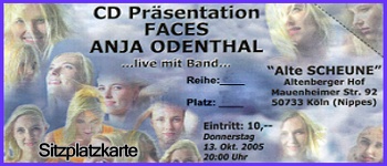 Samstag, den 27.11.2010 „Im alten Brauhaus“ in Köln Höhenhaus Anja Odenthal „Zeit für die Liebe“ -11 Jahre nach der Goldenen Stimmgabel endlich ein Revival Konzert Kauf der letzten CDs „Zeit für die Liebe“ mit Original Autogramm möglich! Beginn 20:00 Uhr, keine Pause