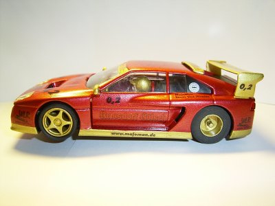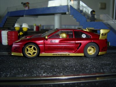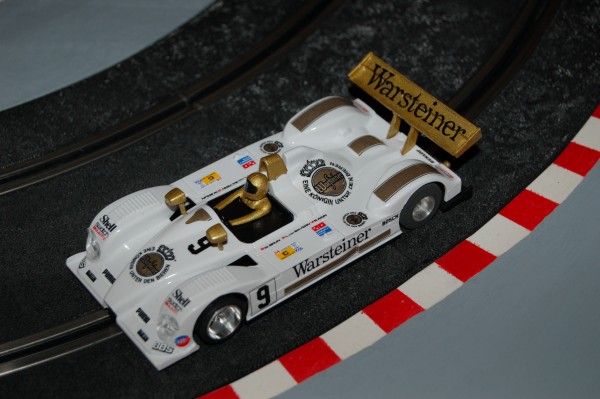 Dieses Modell ist ein Verlegenheits-Modell geworden. Eigentlich wollte ich einen fertig lackieretn Courage von Spirit kaufen, da viel mir der preislich sehr günstige Bausatz von Hobby-Slot in die Finger. Noch im Geschäft entschied ich mich spontan, den C60 mit Warsteiner-Decals zu bekleben. Da ich noch goldenen Lack hatte konnte ich den Fahrer und den Heckgflügel lackieren. Mit dem Ergebnis bin ich einigermassen zufrieden, aber irgendwie ist Gold nich mein Fall.