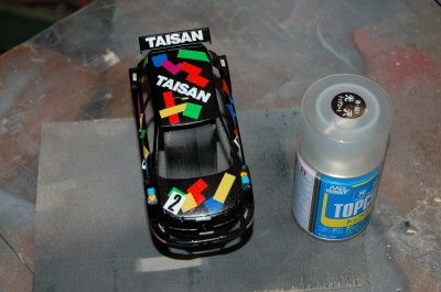 Beim Taisan-Megane habe ich das erste mal ein fertiges Decal-Set verwendet. Ich habe mich für das 1:32 Set der Firma DMC entschieden. Eigentlich ist das Set für einen Porsche 962 gedacht, paßt aber auch hervorragende auf einen Megane. Auch dieses Auto habe ich in der kalten Jahreszeit lackiert. Diesmal habe ich aber die Werkstatt meiner Arbeitsstelle benutzt, daher ist das Lackierergebnis sehr gut geworden. Die Arbeitsschritte sind genau die gleiche wie bei den anderen Modellen: