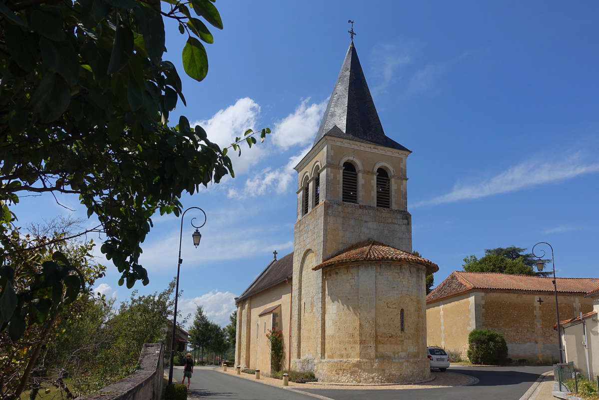 Église romane à coupole du 12e siècle.Nef et clocher retouchés au 19e siécle.Ancien prieuré bénédictin.