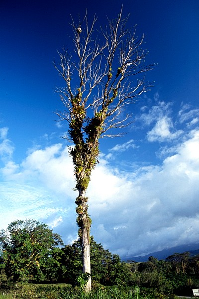Ein mit Epiphyten bewachsener Baum am Ufer des Arenalsees.