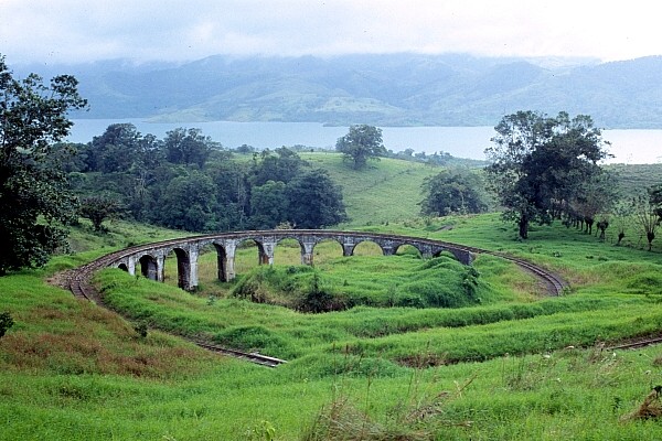 Um den Höhenunterschied zu überwinden legte Franz Ulrich diesen Viadukt für seine Schmalspurbahn an. Am Endbahnhof auf dem Gipfel entsteht ein Panoramarestaurant mit Blick auf den Vulkan Arenal. |