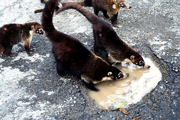 Auf der Straße zum Tabacon Resort trafen wir auf eine Horde wegelagernder Weißrüsselnasenbären.