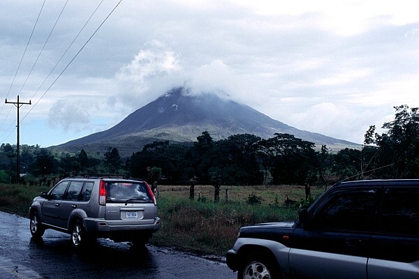 Die meiste Zeit hüllt sich der Gipfel des Vulkans Arenal in dichte Wolken, hier aber zeigte er sich für einen Moment fast vollständig.