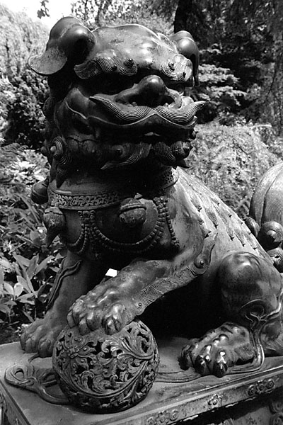 Bronze-Löwe an einem der Eingänge zum japanischen Garten