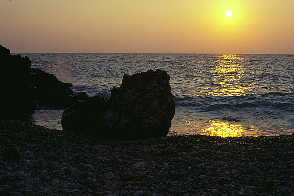 Sonnenuntergang an einer der ruhigen Buchten von Lefkos.