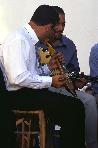 Die dreisaitige Lyra kann man mit einer Geige vergleichen, die auf dem Knie aufgestützt gespielt wird. Am Bogen sind etliche kleine Glöckchen angebracht.