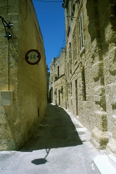 Straße in der alten Hauptstadt Mdina, auch "die Ruhige". Autos dürfen nur mit Sondergenehmigung verkehren. Schaut man sich die Straßenbreite an, dann weiß man auch warum. |