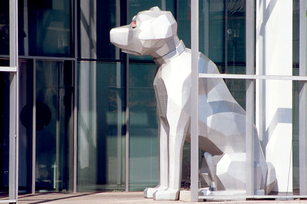 Der EMI-Hund im Eingang des EMI-Gebäudes im Mediapark.