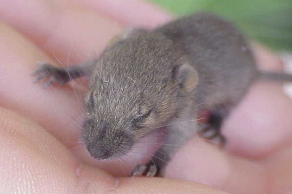 Ritzo fand ich eines Tages stark geschwächt und mutterlos bei uns in der Firma im Flur. Er war schätzungsweise 10 Tage alt und so groß wie mein oberstes Daumenglied. Trotz allem Bemühen hatte er die folgende Nacht nicht überlebt. |